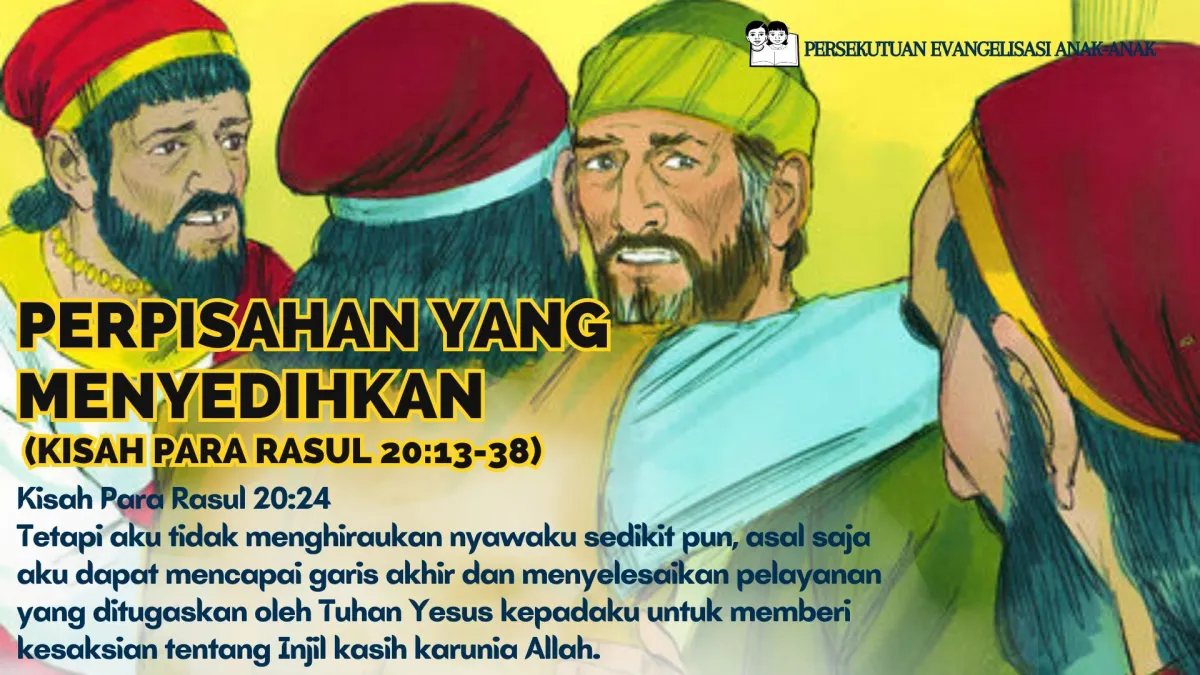 Semoga kita mempunyai semangat tanpa lelah seperti Paulus: Tetapi aku tidak menghiraukan nyawaku sedikit pun, asal saja aku dapat mencapai garis akhir dan menyelesaikan pelayanan yang ditugaskan oleh Tuhan Yesus kepadaku untuk memberi kesaksian tentang Injil kasih karunia Allah.